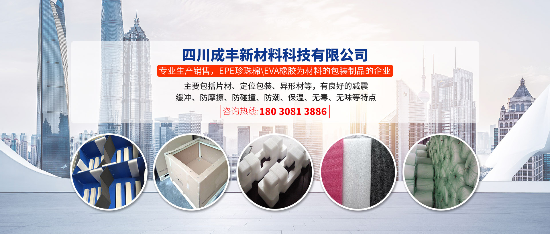 四川成豐新材料科技有限公司位于四川省德陽(yáng)市旌陽(yáng)區(qū)圖門(mén)江路30號(hào),公司成立以來(lái)一直專業(yè)、誠(chéng)信為客戶服務(wù)。現(xiàn)在是一家專業(yè)生產(chǎn)銷售,EPE珍珠棉\EVA橡膠為材料的包裝制品的企業(yè),包括片材、定位包裝、異形...